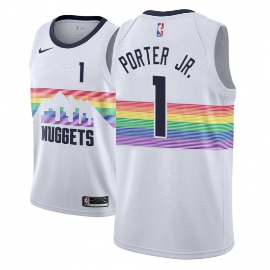 Men NBA 2018-19 Denver Nuggets #1 Michael Porter Jr. City Edition White Jersey