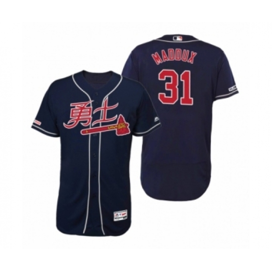 Men's 2019 Asian Heritage Month Atlanta Braves #31 Greg Maddux Navy Chinese Flex Base Jersey