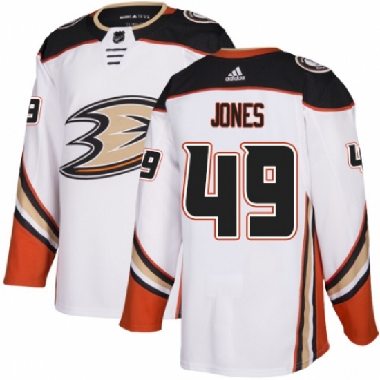 Men's Adidas Anaheim Ducks #49 Max Jones Authentic White Away NHL Jersey