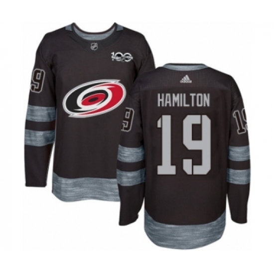 Men's Adidas Carolina Hurricanes #19 Dougie Hamilton Authentic Black 1917-2017 100th Anniversary NHL Jersey