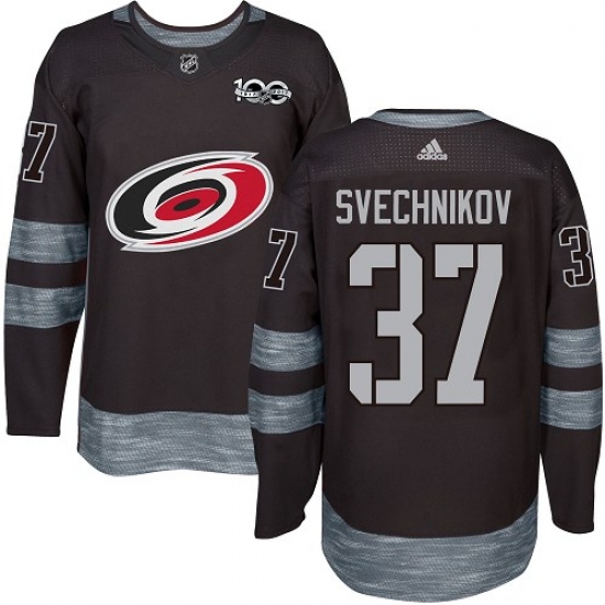 Men's Adidas Carolina Hurricanes #37 Andrei Svechnikov Authentic Black 1917-2017 100th Anniversary NHL Jersey