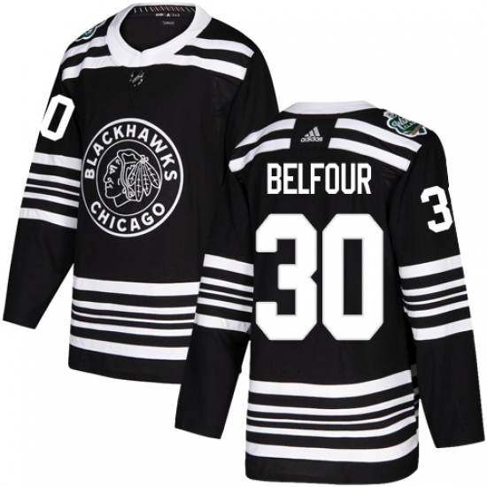 Men's Adidas Chicago Blackhawks #30 ED Belfour Authentic Black 2019 Winter Classic NHL Jersey