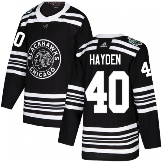 Men's Adidas Chicago Blackhawks #40 John Hayden Authentic Black 2019 Winter Classic NHL Jersey