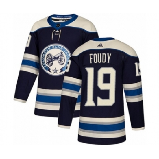>Men's Adidas Columbus Blue Jackets #19 Liam Foudy Premier Navy Blue Alternate NHL Jersey