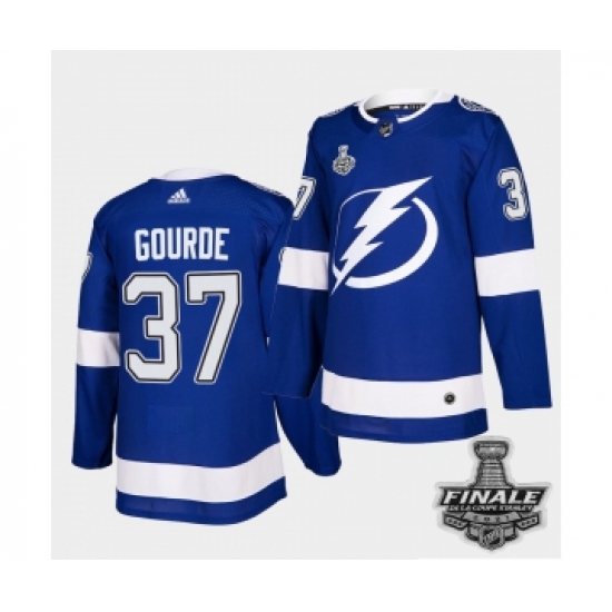 >Men's Adidas Lightning #37 Yanni Gourde Blue Home Authentic 2021 Stanley Cup Jersey