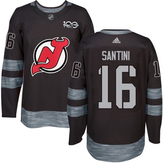 Men's Adidas New Jersey Devils #16 Steve Santini Authentic Black 1917-2017 100th Anniversary NHL Jersey