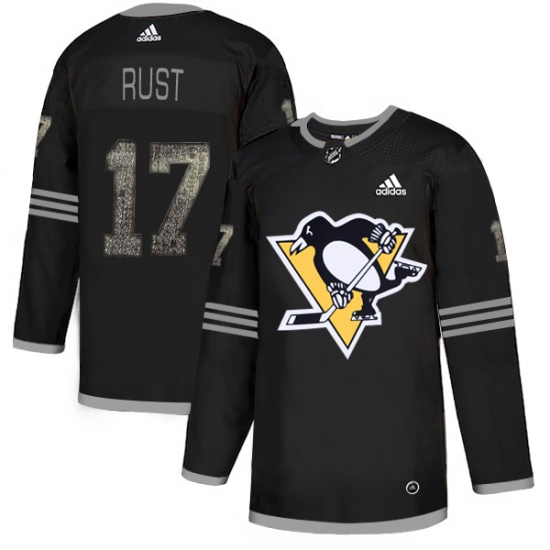 >Men's Adidas Pittsburgh Penguins #17 Bryan Rust Black Authentic Classic Stitched NHL Jersey