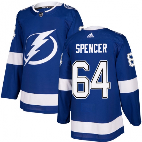 Home>NHL>Tampa Bay Lightning>Matthew Spencer>Men's Adidas Tampa Bay Lightning #64 Matthew Spencer Authentic Royal Blue Home NHL Jersey