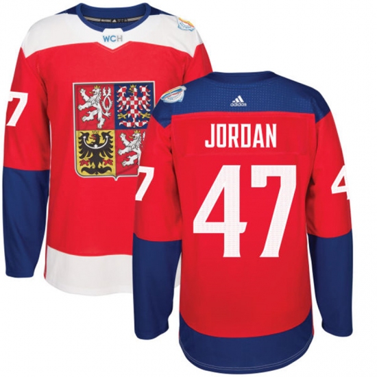 Home>NHL>Team Czech Republic>Michal Jordan>Men's Adidas Team Czech Republic #47 Michal Jordan Premier Red Away 2016 World Cup of Hockey Jersey