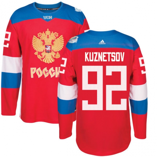 Home>NHL>Team Russia>Evgeny Kuznetsov>Men's Adidas Team Russia #92 Evgeny Kuznetsov Authentic Red Away 2016 World Cup of Hockey Jersey