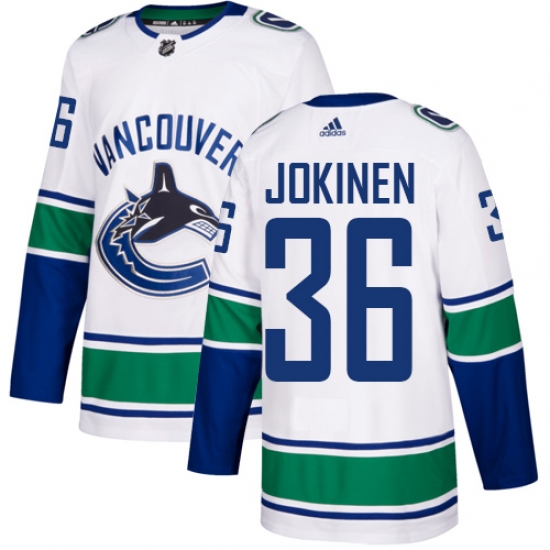 Men's Adidas Vancouver Canucks #36 Jussi Jokinen Authentic White Away NHL Jersey