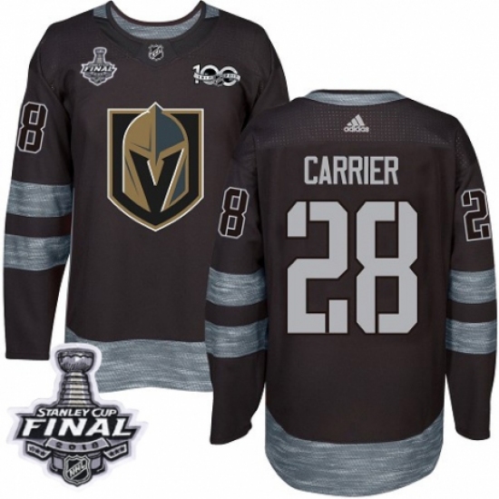 >Men's Adidas Vegas Golden Knights #28 William Carrier Authentic Black 1917-2017 100th Anniversary 2018 Stanley Cup Final NHL Jersey