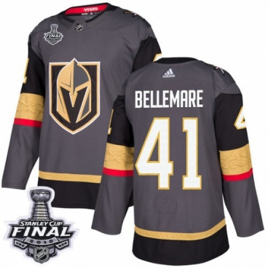 Men's Adidas Vegas Golden Knights #41 Pierre-Edouard Bellemare Authentic Gray Home 2018 Stanley Cup Final NHL Jersey