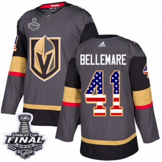 >Men's Adidas Vegas Golden Knights #41 Pierre-Edouard Bellemare Authentic Gray USA Flag Fashion 2018 Stanley Cup Final NHL Jersey