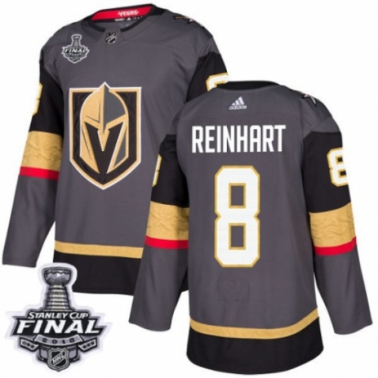 Men's Adidas Vegas Golden Knights #8 Griffin Reinhart Authentic Gray Home 2018 Stanley Cup Final NHL Jersey