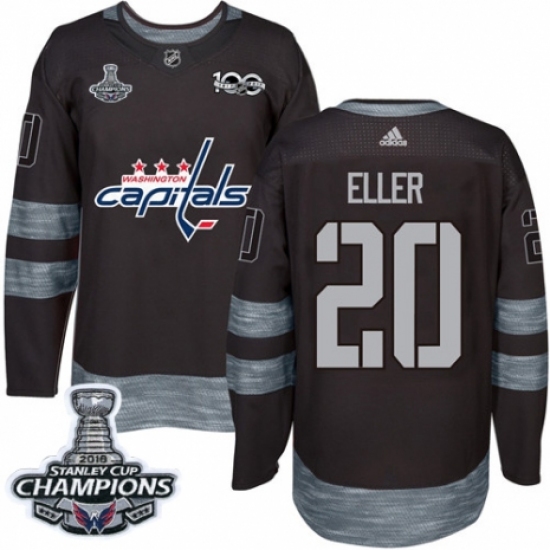 >Men's Adidas Washington Capitals #20 Lars Eller Authentic Black 1917-2017 100th Anniversary 2018 Stanley Cup Final Champions NHL Jersey