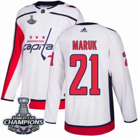 Men's Adidas Washington Capitals #21 Dennis Maruk Authentic White Away 2018 Stanley Cup Final Champions NHL Jersey