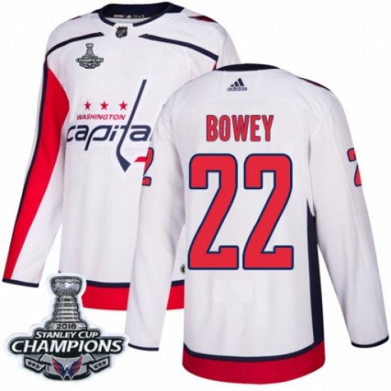 Men's Adidas Washington Capitals #22 Madison Bowey Authentic White Away 2018 Stanley Cup Final Champions NHL Jersey