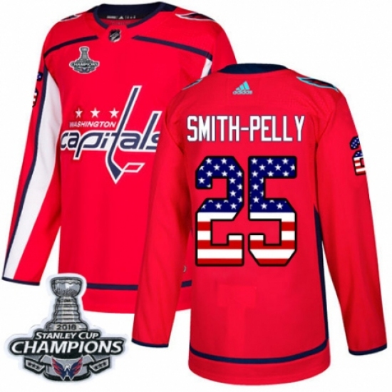 Men's Adidas Washington Capitals #25 Devante Smith-Pelly Authentic Red USA Flag Fashion 2018 Stanley Cup Final Champions NHL Jersey