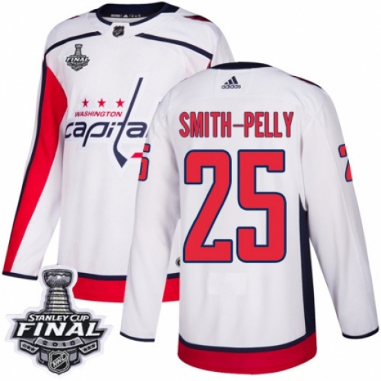 Men's Adidas Washington Capitals #25 Devante Smith-Pelly Authentic White Away 2018 Stanley Cup Final NHL Jersey