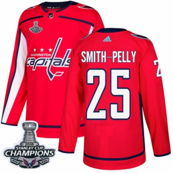 Men's Adidas Washington Capitals #25 Devante Smith-Pelly Premier Red Home 2018 Stanley Cup Final Champions NHL Jersey