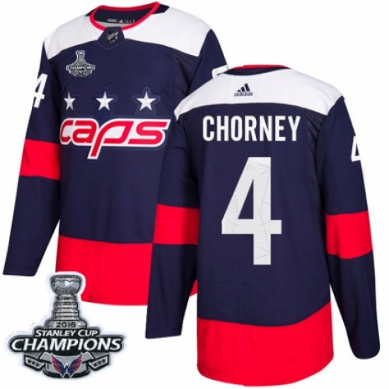 >Men's Adidas Washington Capitals #4 Taylor Chorney Authentic Navy Blue 2018 Stadium Series 2018 Stanley Cup Final Champions NHL Jersey