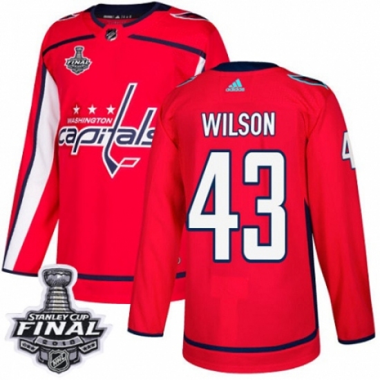Men's Adidas Washington Capitals #43 Tom Wilson Authentic Red Home 2018 Stanley Cup Final NHL Jersey
