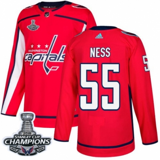 Men's Adidas Washington Capitals #55 Aaron Ness Premier Red Home 2018 Stanley Cup Final Champions NHL Jersey