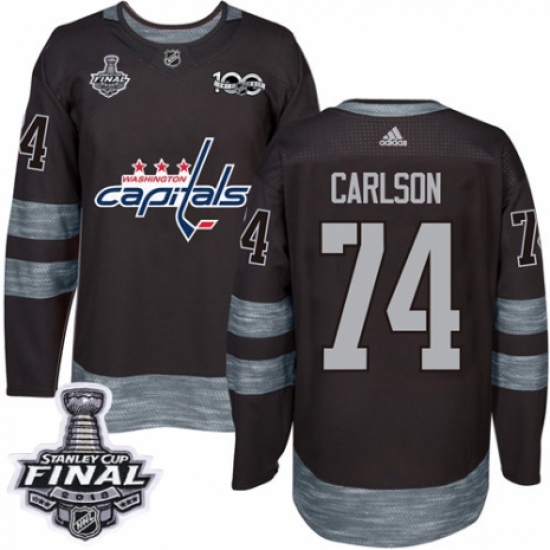 Men's Adidas Washington Capitals #74 John Carlson Authentic Black 1917-2017 100th Anniversary 2018 Stanley Cup Final NHL Jersey