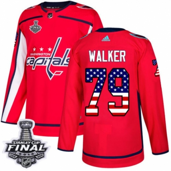 Men's Adidas Washington Capitals #79 Nathan Walker Authentic Red USA Flag Fashion 2018 Stanley Cup Final NHL Jersey