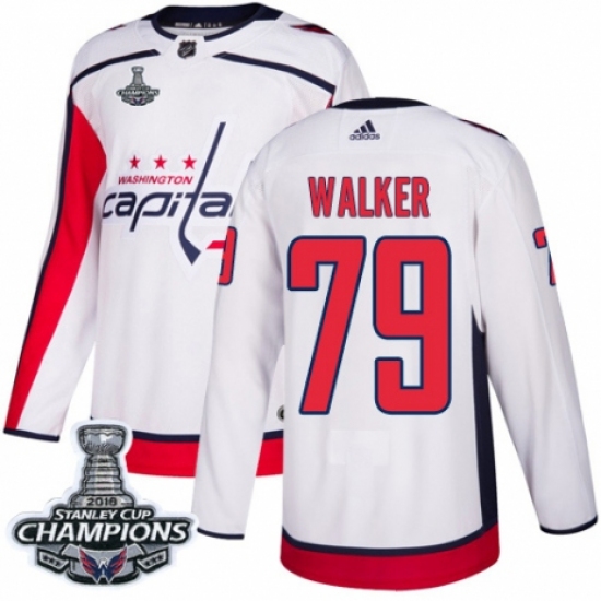 Men's Adidas Washington Capitals #79 Nathan Walker Authentic White Away 2018 Stanley Cup Final Champions NHL Jersey