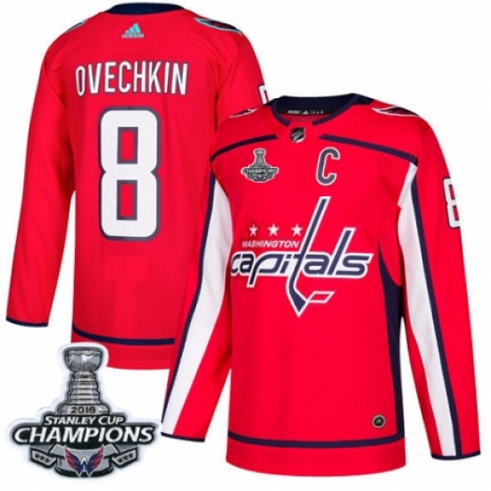 Men's Adidas Washington Capitals #8 Alex Ovechkin Premier Red Home 2018 Stanley Cup Final Champions NHL Jersey