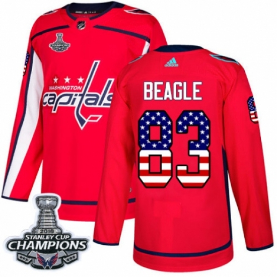 Men's Adidas Washington Capitals #83 Jay Beagle Authentic Red USA Flag Fashion 2018 Stanley Cup Final Champions NHL Jersey