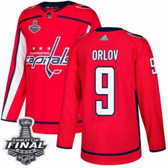 Men's Adidas Washington Capitals #9 Dmitry Orlov Premier Red Home 2018 Stanley Cup Final NHL Jersey