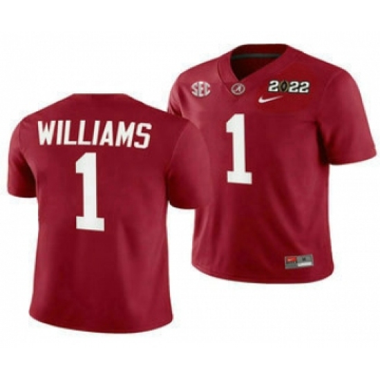 >Men's Alabama Crimson Tide #1 Jameson Williams 2022 Patch Red College Football Stitched Jersey