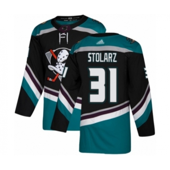 Men's Anaheim Ducks #31 Anthony Stolarz Authentic Black Teal Alternate Hockey Jersey