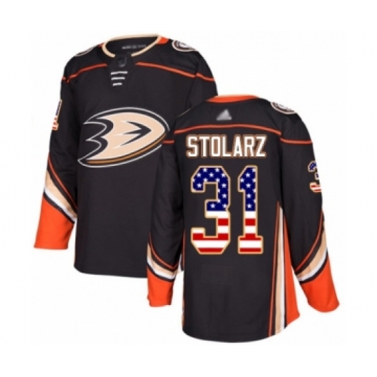 >Men's Anaheim Ducks #31 Anthony Stolarz Authentic Black USA Flag Fashion Hockey Jersey