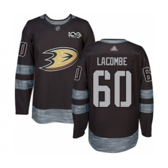 >Men's Anaheim Ducks #60 Jackson Lacombe Authentic Black 1917-2017 100th Anniversary Hockey Jersey