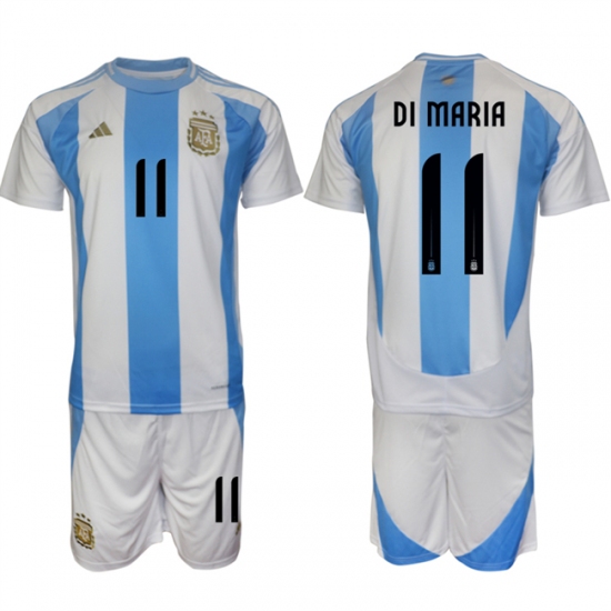 >Men's Argentina #11 Di maria White Blue 2024-25 Home Soccer Jersey Suit