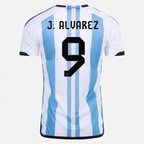Men's Argentina #9 Julian Alverez White Blue Home Soccer Jersey Suit