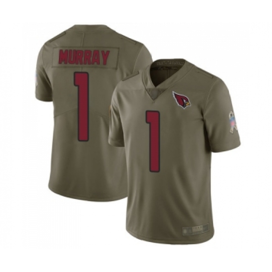 >Men's Arizona Cardinals #1 Kyler Murray Limited Olive 2017 Salute to Service Football Jersey