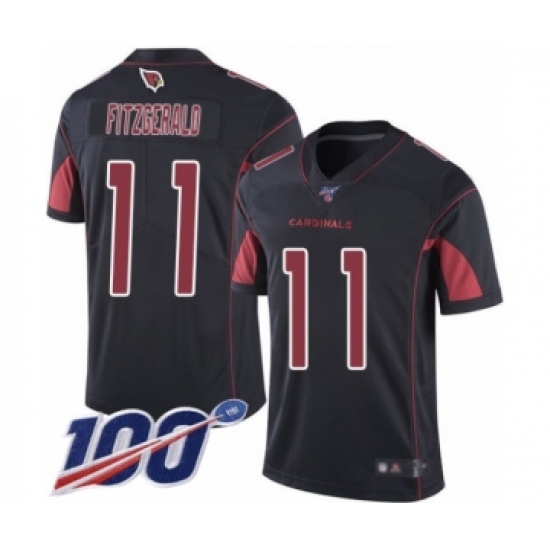 >Men's Arizona Cardinals #11 Larry Fitzgerald Limited Black Rush Vapor Untouchable 100th Season Football Jersey