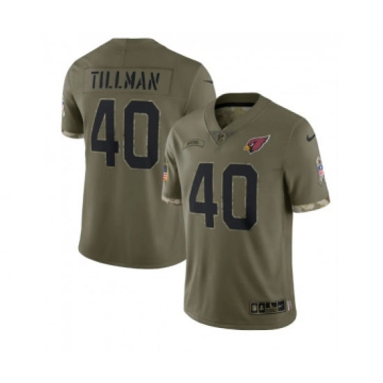 >Men's Arizona Cardinals #40 Pat Tillman 2022 Olive Salute To Service Limited Stitched Jersey