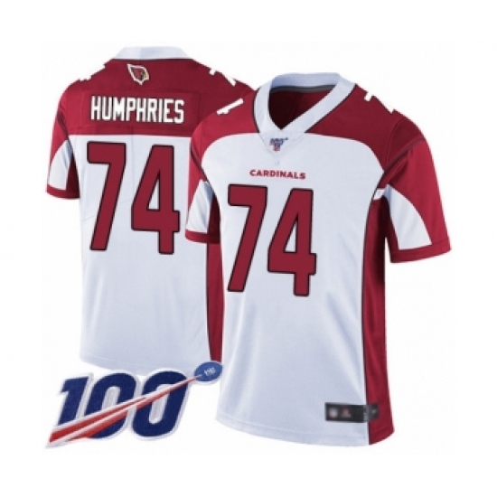 >Men's Arizona Cardinals #74 D.J. Humphries White Vapor Untouchable Limited Player 100th Season Football Jersey