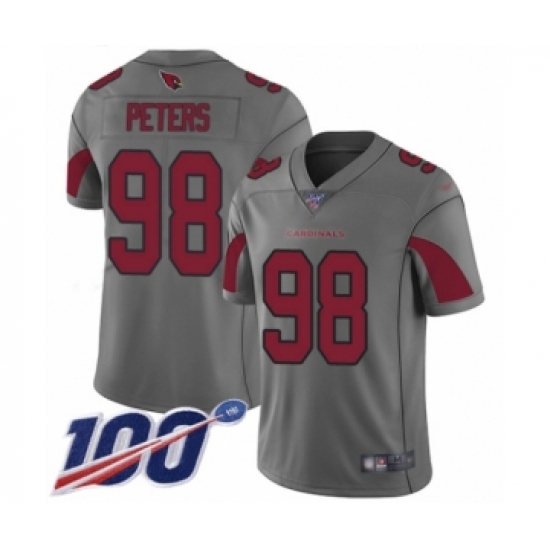 Men's Arizona Cardinals #98 Corey Peters Limited Silver Inverted Legend 100th Season Football Jersey