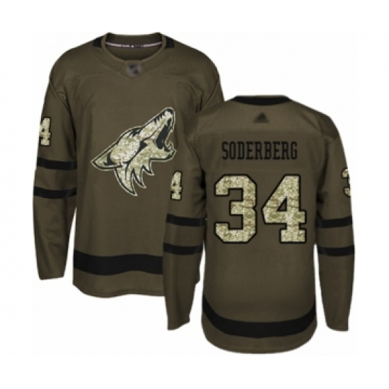 >Men's Arizona Coyotes #34 Carl Soderberg Authentic Green Salute to Service Hockey Jersey