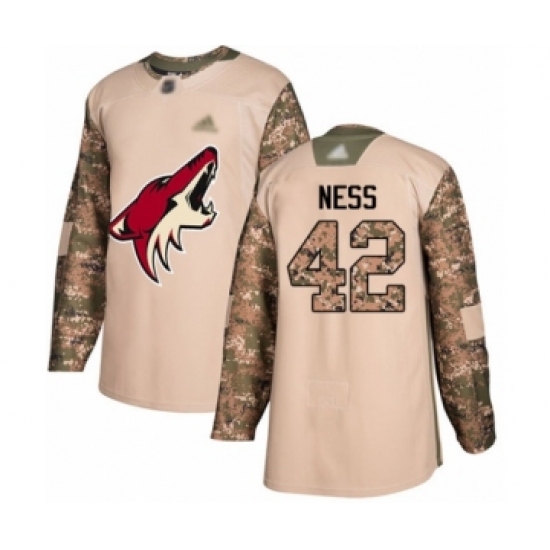 >Men's Arizona Coyotes #42 Aaron Ness Authentic Camo Veterans Day Practice Hockey Jersey