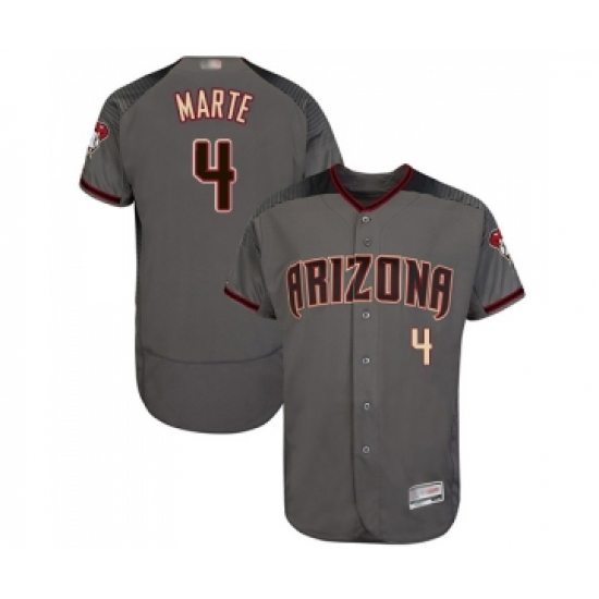 >Men's Arizona Diamondbacks #4 Ketel Marte Grey Road Authentic Collection Flex Base Baseball Jersey
