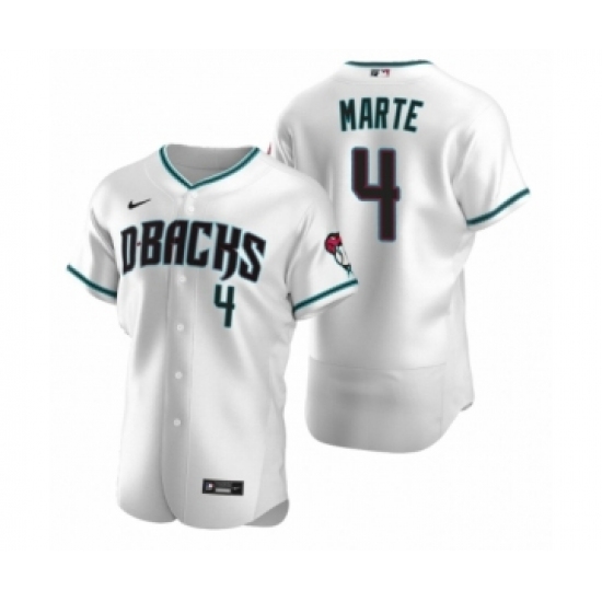 >Men's Arizona Diamondbacks #4 Ketel Marte Nike White Teal Authentic 2020 Alternate Jersey