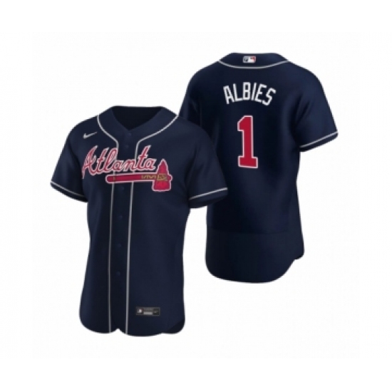 Men's Atlanta Braves #1 Ozzie Albies Nike Navy Authentic 2020 Alternate Jersey